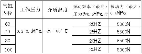 注:根據(jù)用戶需要,可開發(fā)較小規(guī)格或更大規(guī)格的振動(dòng)氣缸。