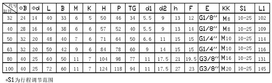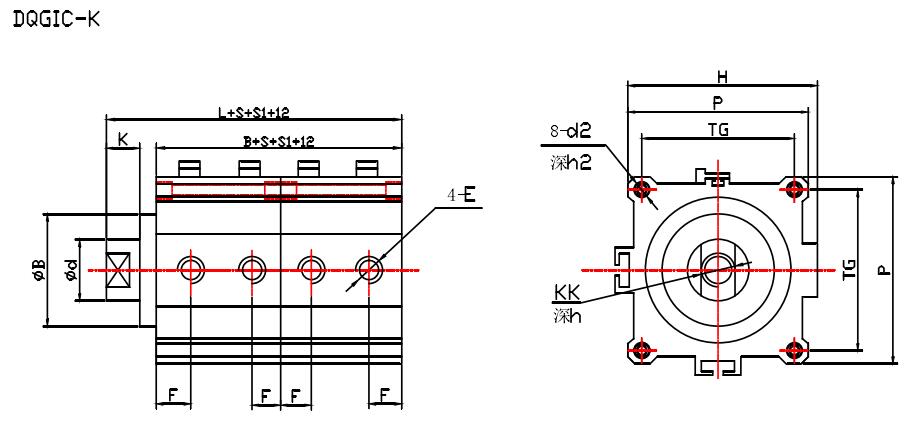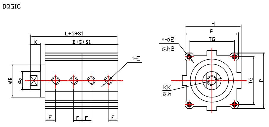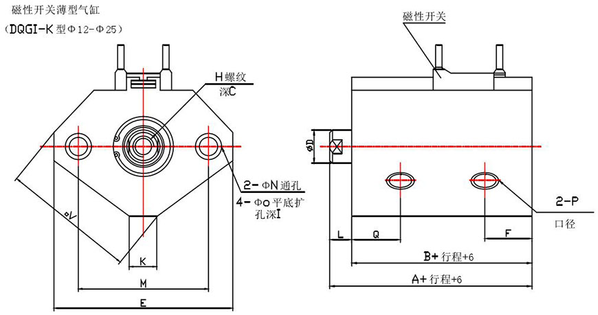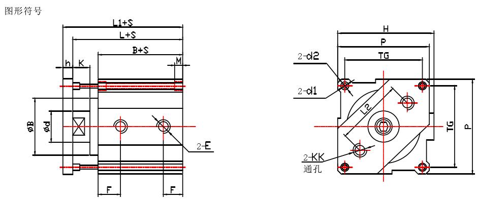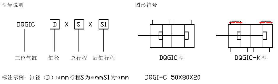 示例:磁性開關(guān)雙活塞型、缸徑50、行程S1=55,S2=60 DQGIH一K50×55×60