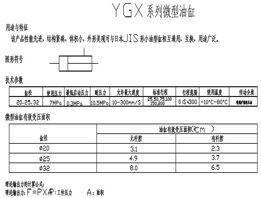 YGX系列微型液壓缸(7Mpa、10Mpa)